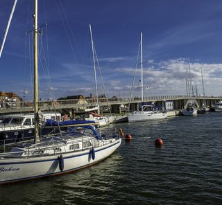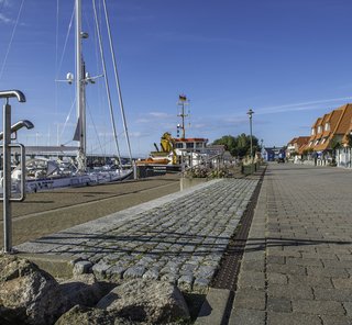 Sassnitz mit der längsten Mole Europas und sehenswerter Brücke von der Altstadt zum Hafen, Schiffstouren entlang der Kreideküste